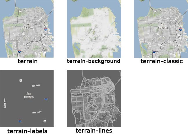 For over a decade, Stamen has been exploring cartography with their clients and in research. Their map tiles are made available as part of the CityTracking project, funded by the Knight Foundation, in which Stamen is building web services and open source tools to display public data in easy-to-understand, highly visual ways.